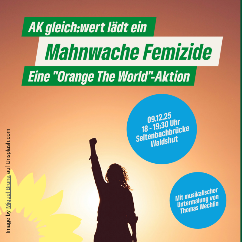 Am 9. Dezember 2025, ab 18 Uhr, wollen wir auf der Seltenbachbrücke in Waldshut gemeinsam der Frauen gedenken, die im Jahr 2024 durch Femizide ihr Leben verloren haben.
